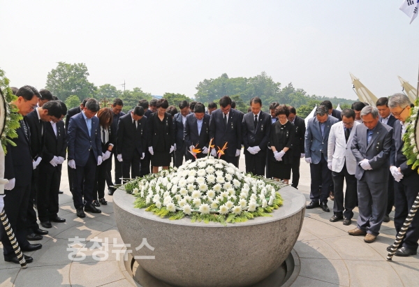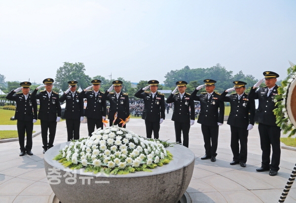 충남 당진시가 제63회 현충일을 맞아 나라사랑공원 현충탑에서 국가와 겨레를 위해 산화한 순국선열과 호국영령의 숭고한 희생을 기리기 위해 추념식을 6일 거행했다.