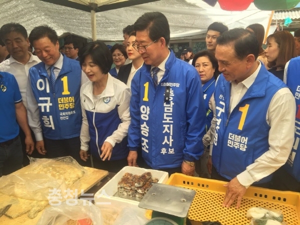 추미애 더불어민주당 대표가 “충남과 천안 지역민들의 삶이 좋아지기 위해 이번 지방선거에서 기호 1번을 꼭 지지해 달라”며 민주당 후보들의 지지를 호소했다.