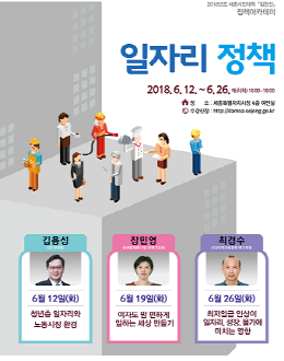19일 장민영 한국법제연구원 부연구위원이 ‘여자도 맘 편하게 일하는 세상만들기’를, 26일은 최경수 KDI인적자원정책 연구부장이 ‘최저임금 인상이 일자리, 성장, 물가에 미치는 영향’을 주제로 강의를 펼친다.