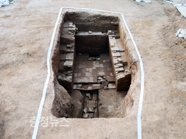 충남 공주시가 문화재청과 함께 공주 교촌리에서 백제 전축분 탐색조사를 통해 무령왕릉과 유사한 형태의 새로운 백제시대 전축분을 확인했다고 7일 밝혔다.
