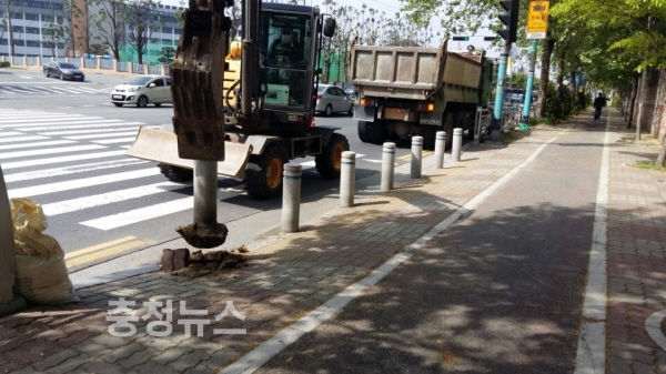 비규격 볼라드 1400개 철거 후 규격에 맞는 750개 재설치