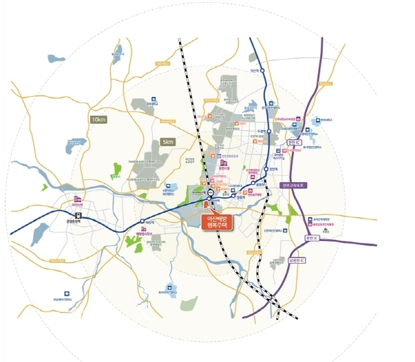 천안불당, 아산탕정, 아산배방 등 3개 신도심의 풍부한 생활 인프라와 삼성디스플레이시티1, 2와 삼성나노시티 등 3개의 삼성사업장은 물론 천안 2,3,4 일반산업단지 등이 가까워 직주근접의 환경을 갖추고 있다는 평이다.