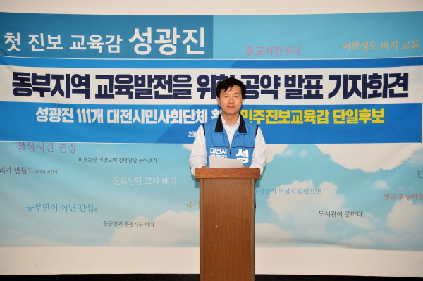 성광진 대전교육감 민주진보 단일후보는 7일 ‘동부지역 교육발전을 위한 공약’을 발표했다.