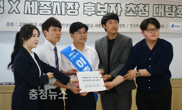 세종시 3개 대학 고려대,홍익대,한국영상대 학생대표는 7일 이춘희 세종시장 후보 초청 대담회를 개최했다.