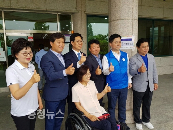 더불어민주당 양승조 충남도지사 후보가 이인제 후보의 고향인 논산에서 사전 투표를 마쳤다.