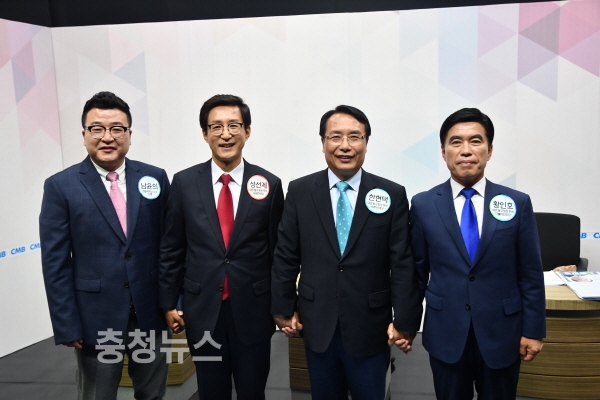 8일 CMB 대전방송과 충청뉴스 등이 공동으로 마련한 대전 동구청장 후보자 초청 토론회에서 더불어민주당 황인호 후보의 음주운전 전력을 놓고 뜨거운 공방을 벌였다.