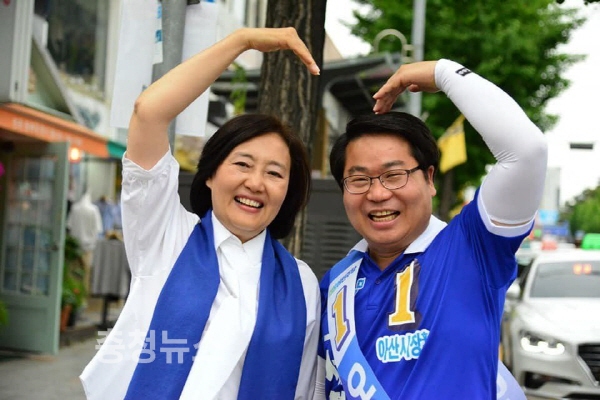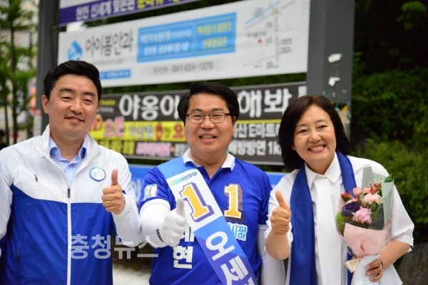 민주당 박영선 의원, 오세현 아산시장 후보 / 충청뉴스 최형순 기자