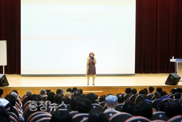 지난 8일 열린 강의(제6강)에는 서명숙 제주올레 이사장이 강사로 나서 ‘느리게 걷는 장거리 도보 여행’을 주제로 400여 명의 주민이 구청 대강당을 가득 메운 가운데 진행됐다.