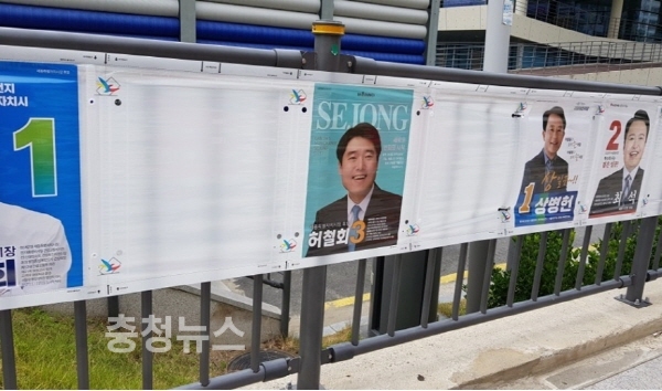 아름동복합커뮤니티센터 뒤편의 선거 벽보 / 충청뉴스 최형순기자