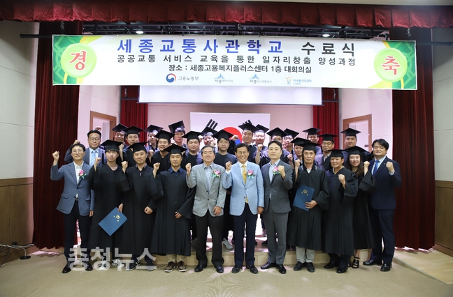 세종도시교통공사(사장 고칠진)는 지난 8일 오전 11시 조치원읍에 위치한 세종고용복지플러스센터에서 교통사관학교의 수료식을 갖고 졸업생 22명을 배출했다고 밝혔다.