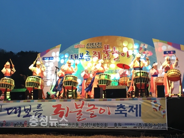 신탄진대보름 쥐불놀이 축제에서 난타 공연을 선보이는 ‘새여울예술단’ 모습