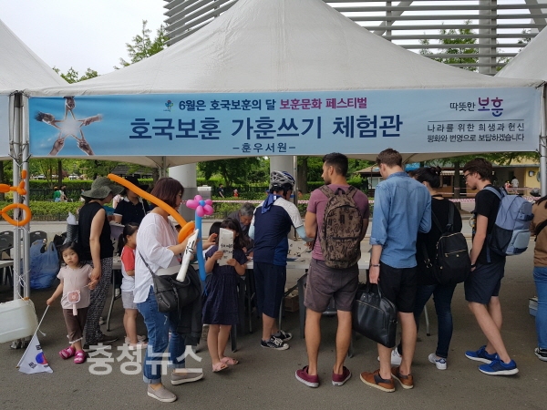 상이군경회 대전시지부 훈우서원(원장 박수민)은 지난 9일 호국보훈의 달을 맞이해 대전엑스포 시민광장에서 「호국보훈 가훈쓰기 체험관」을 운영했다.
