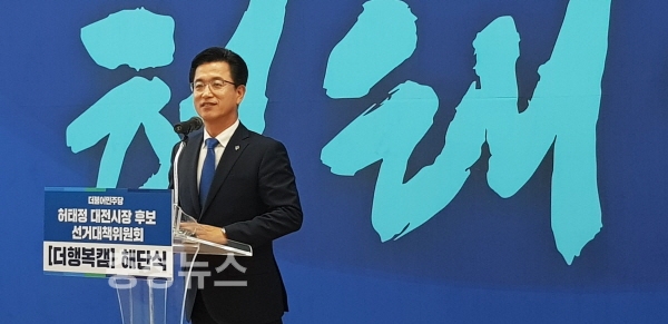 허태정 당선인은 이날 인사말에서 "함께 해준 여러분께 감사드린다"며 "이번 승리로 무거운 책임감을 느낀다"고 말했다.