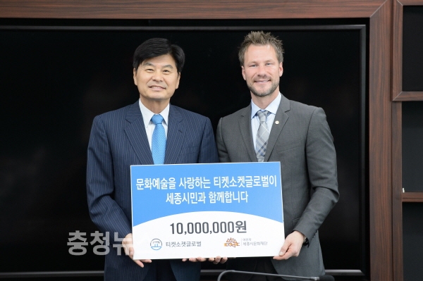 美 티켓소켓(Ticket Socket USA) 社(대표 마크밀러 Mark Miller)와 ㈜ 티켓소켓코리아(Ticket Socket Korea)가 18일 세종시에 문화예술 후원금과 장학기금 2000만 원을 기탁했다.