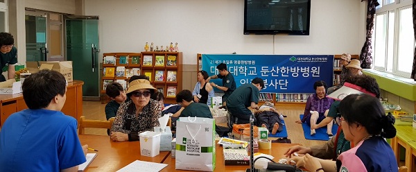 대전대 둔산한방병원은 손창규 교수팀으로 구성된 의료봉사단이 지난 16일 옥천군 지역민들을 대상으로 의료봉사를 펼쳤다고 18일 밝혔다.