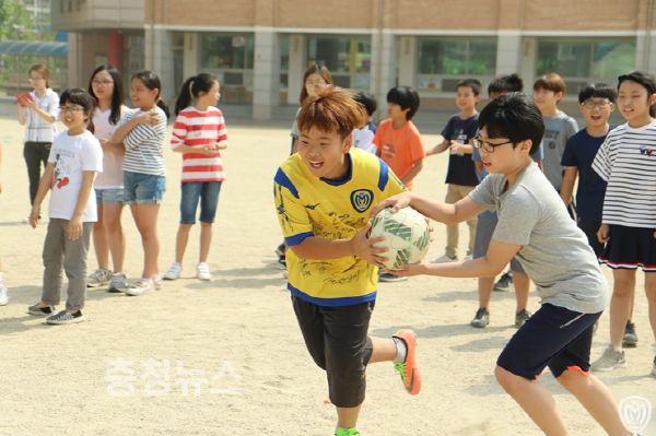 지난 18일 아산무궁화프로축구단(대표이사 박성관)의 비타민 스쿨을 위해 김민균, 김상필, 민상기가 동신초등학교를 찾았다.