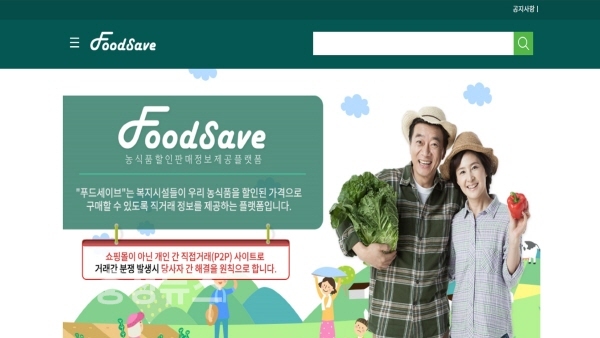 ‘푸드세이브’는 보건복지부에 등록된 복지시설이 이용하는‘사회복지시설정보시스템’과 연계하여 aT 농수산물사이버거래소 포스몰 대표상품 200종을 복지시설을 대상으로 전시, 할인 판매하고 있는 플랫폼으로 지난 2017년 11월 27일 오픈했다.
