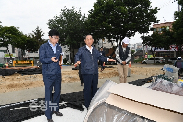 황선봉 군수는 19일 어린이공원 내 물놀이시설 사업장을 방문 점검했다