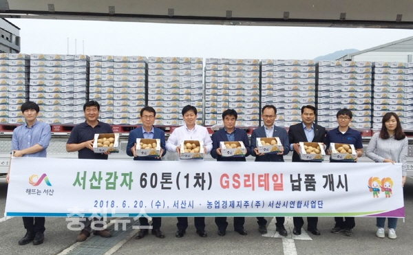 이번에 납품되는 감자는 통합마케팅에 참여하는 7개 농협이 확보해 서산6쪽마늘조합공동법인에서 집하와 선별, 포장과정을 거쳐 GS리테일 측에 인계된다.