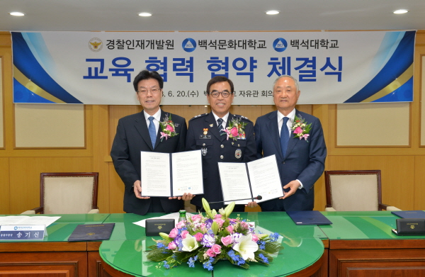 백석대학교(총장 장종현)ㆍ백석문화대학교는 20일 교내 자유관 2층 회의실에서 경찰인재개발원과 교육협력협약을 체결했다.