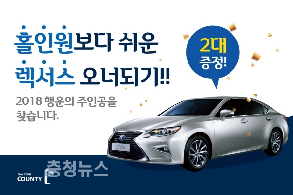 ㈜골프존카운티(대표이사 서상현)가 지난 20일부터 오는 11월 18일까지 골프존카운티 회원을 대상으로 렉서스 ES300h 총 2대를 증정하는 ‘홀인원보다 쉬운 렉서스 오너되기’ 이벤트를 실시한다고 밝혔다.