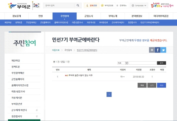 부여군홈페이지 주민참여 ‘민선7기 부여군에 바란다’ 개설