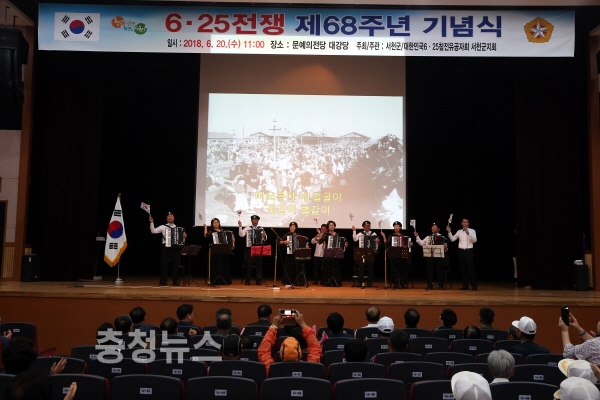 충남 서천군은 지난 20일 문예의전당 대강당에서 500여명이 참석한 가운데 ‘6·25전쟁 제68주년 기념식’을 가졌다.