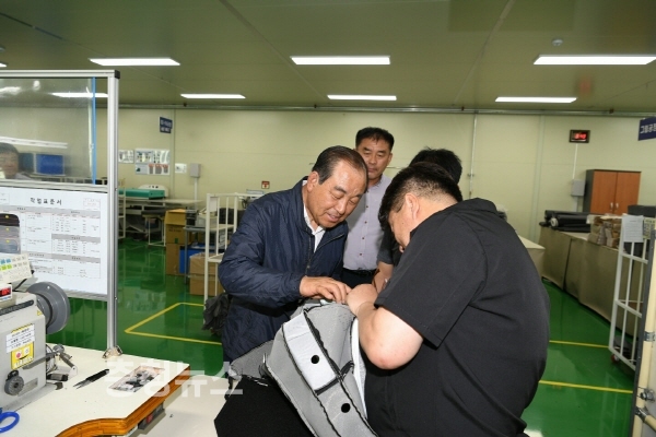 같은 맥락에서 황선봉 군수는 지난 20일 ㈜SG충방을 전격 방문해 공장 가동상황 점검, 정영호 이사 등 충방 관계자를 만나 애로사항을 확인했으며, 생산라인, 휴게실, 식당 등을 일일이 살펴보고 직원들을 격려했다.