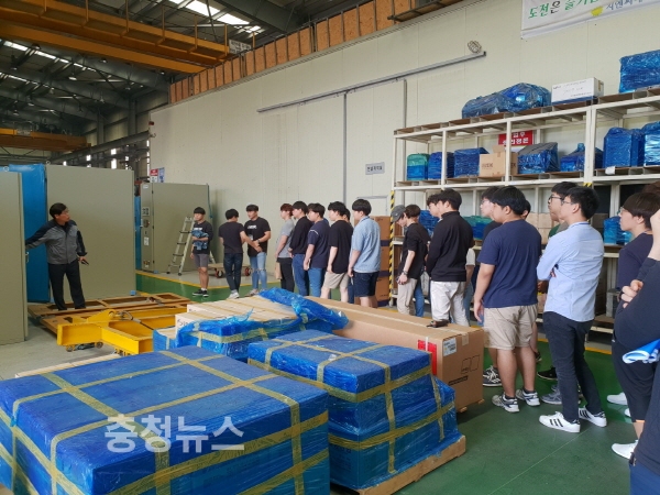 이 날 호서대학교 산학융합캠퍼스(당진) 2,3학년 재학생 30명과 관계자들은 당진시에 위치한 ㈜이화글로텍, ㈜지엔씨에너지를 방문해 직접 공장에서 제품이 제작되는 과정을 둘러보았다.