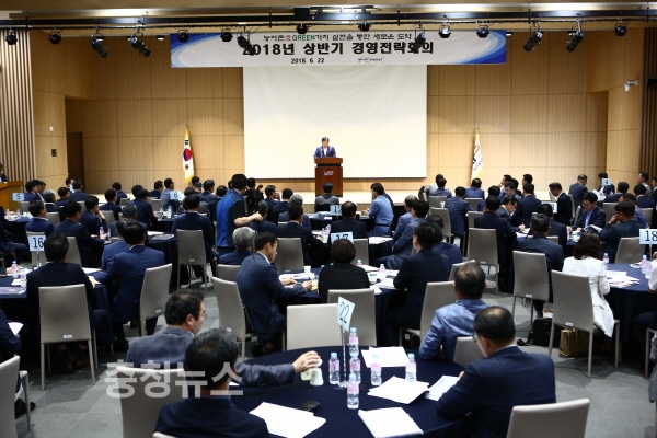 한국농어촌공사(사장 최규성)는 22일 경기도 안산 한국농어촌공사 인재개발원에서 임직원 160여명이 참석한 가운데‘상반기 경영전략회의’를 개최했다.