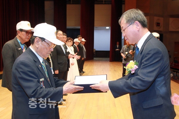 김택수 정무부시장이 보훈 유공자에게 표창을 전달하고 있다.