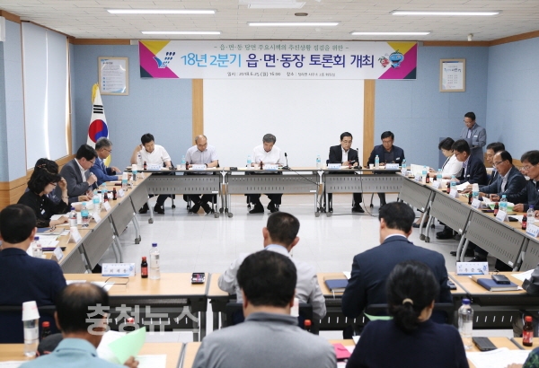 충남 보령시는 지난 25일 오후 청라면사무소 회의실에서 김동일 시장과 부서장, 청라면 이장단 등 50여 명이 참석한 가운데 읍면동 당면 주요시책의 추진상황을 점검하기 위한 2분기 찾아가는 읍면동장 토론회를 개최했다.
