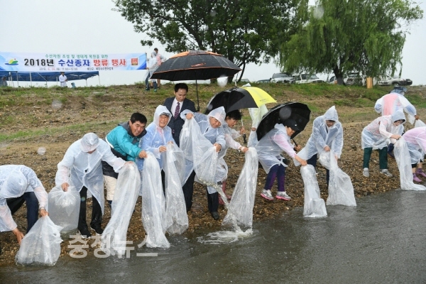 예산군과 예당내수면 어업계에서 준비‧방류한 물고기들은 질병검사에 합격한 최상의 어린물고기다.