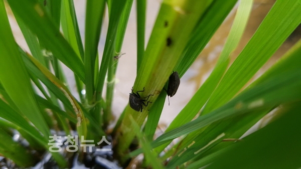 충남 부여군에서는 최근 예찰조사에서 벼농사 품질과 수량에 큰 피해를 주는 먹노린재가 발견됨에 따라 관련 농가를 대상으로 긴급 방제지도에 나섰다.