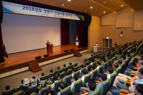 입사식은 선배직원들의 따뜻한 환영 속에 진행됐으며, 서부발전 김병숙 사장은 환영사에서 신입사원들에게 축하 인사와 함께 “항상 초심을 잃지 말고 청렴성과 공정성을 유지하며 끊임없는 자기계발을 통해 서부발전의 미래를 이끌어 갈 인재가 되어줄 것”을 당부했다.