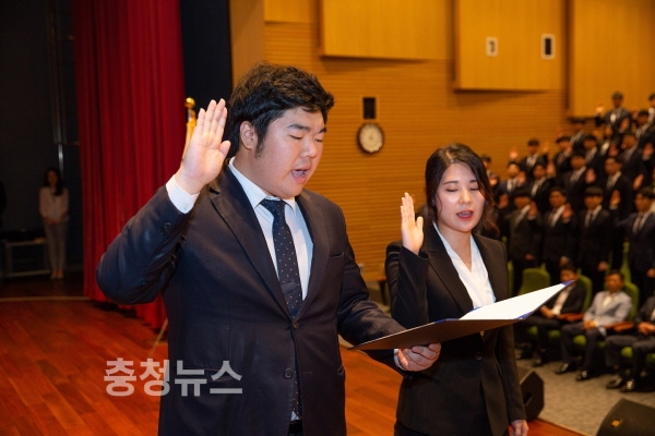 서부발전, 블라인드 채용 정규직 신입사원 입사식에서 신입사원 선서 모습