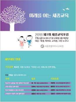 이번 포럼은 ‘미래를 여는 세종교육’이라는 주제로 7월 6일 오후 2시 30분부터 세종시교육청 2층 대강당에서 개최되며, 세종교육에 관심 있는 학생, 학부모, 교직원, 시민 누구나 참여하여 세종교육 정책 방향에 대해 다양한 의견을 나눌 수 있다.