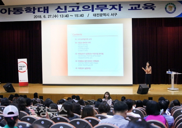 대전 서구(구청장 장종태)는 아동학대 외면 없는 환경 조성을 위해 27일 구청 대강당에서 아동학대 신고 의무자 24개 직군 종사자 300여 명을 대상으로 교육’을 했다고 밝혔다.