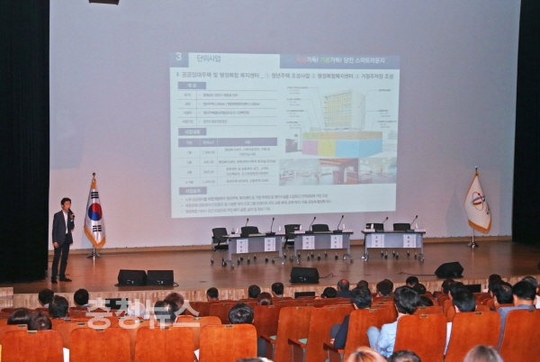 문 센터장은 사업 설명에서 옛 당진군청사를 활용한 당진1동의 도시재생사업으로 주민조직 커뮤니티 거점공간 조성과 예술촌 및 도심광장, 거점주차장 조성 등을 제시했으며, 당진2동의 도시재생사업으로 청년주택과 행정복합복지센터 학생활동 커뮤니티 거점 조성 등에 대해 설명했다.