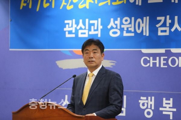 전종한 천안시의장이 28일 천안시청 브리핑룸에서 기자회견을 열고 제7대 천안시의회를 마무리하는 기자회견을 가졌다.