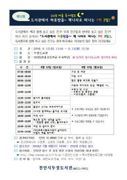 충남 천안시두정도서관(관장 유창기)은 오는 8월 12일부터 13일까지 1박2일 동안 관내 초등학교 4~6학년 30명을 대상으로 ‘도서관에서 하룻밤을~ 책 나라로 떠나는 1박 2일!’여름 독서캠프를 운영한다.
