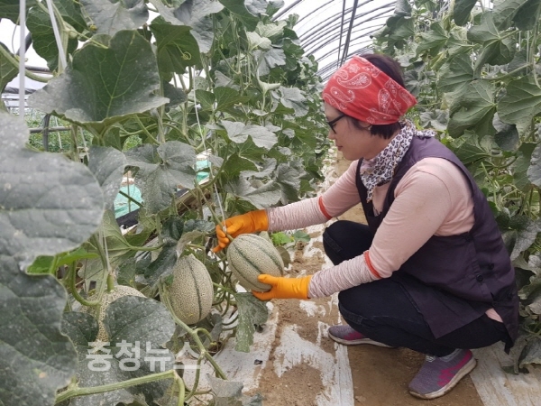 또한 새소득작목 신품종멜론(칸탈로프)재배 시범사업은 전년도에 충남농업기술원에서 주관한 3농혁신 지역창조농업 공모사업에 선정된 사업으로 1.3㏊(60동/495㎡)면적에 칸탈로프멜론 종자, 타이백필름, 친환경자재, 관수자재 등을 투입해 생산기반을 조성했다.
