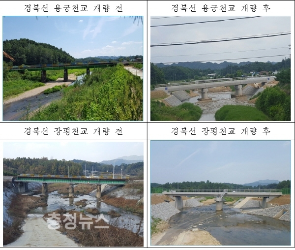 한국철도시설공단 강원본부(본부장 조순형)는 경북선 용궁역∼개포역 사이에 위치한 용궁천교, 장평천교 개량공사를 29일 완료했다고 밝혔다.
