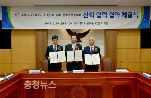 이날 행사에는 백석대 장택현 대학혁신위원장, 백석문화대 정우진 행정부총장, 하세가와 호텔앤 리조트 아베 나츠키 사장(阿部 夏樹)이 참석했다.
