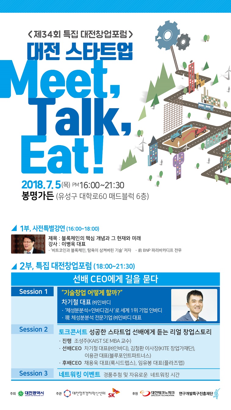 시는 5일 오후 4시부터 유성구 소재 봉명가든에서 대전창업포럼- 대전 스타트업 Meet Talk Eat! 행사를 연다.
