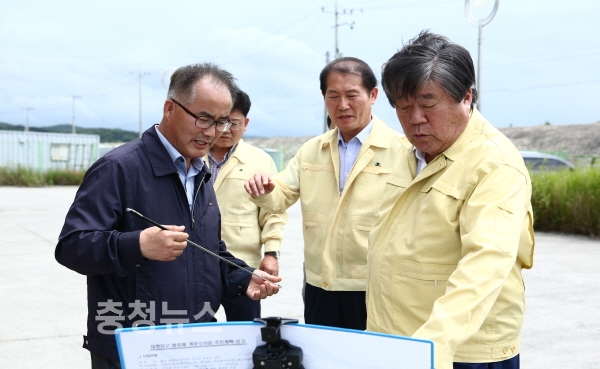 최규성 사장이 충남 보령 주교배수장을 방문, 농업기반시설의 안전을 점검하고 있다