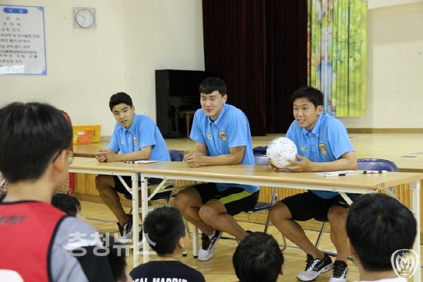 아산무궁화프로축구단(대표이사 박성관)이 지난달 29일 오전, 충무초등학교를 찾았다.