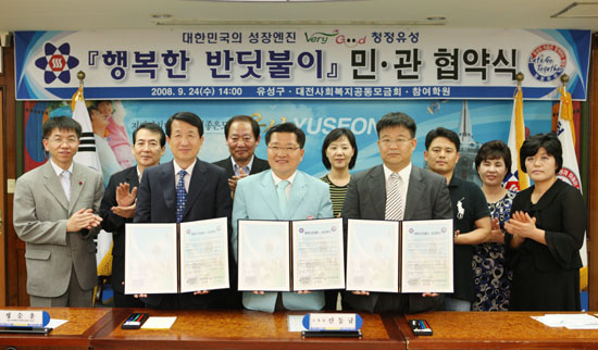 대전 유성구가 사설학원 등과 함께 저소득층 자녀 무료수강 지원에 나선다. 유성구는 24일 중회의실에서 진동규 유성구청장과 김정렬 대전문학원장, 박용규 경성입시학원장과 정순훈 대전사회복지공동모금회장 등 10여명이 참석한 가운데 구관 내 저소득층 자녀들의 무료 수강지원을 위한 ‘행복한 반딧불이’ 민・관 협약을 체결하고 지역사회 복지증진에 상호 협력해 나가기로 했다.