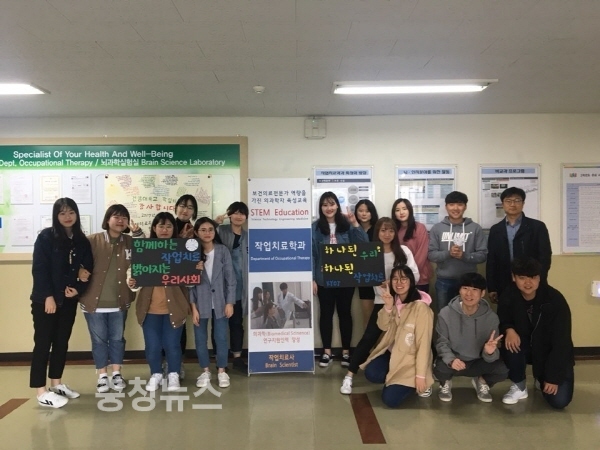 또한 학생들은 지역사회 내에 위치한 복지관 및 소방서와 경찰서 기관을 방문하면서 작업치료 분야를 알리고 장애인이나 치매 어르신을 위한 지역사회 협력과 인식개선 홍보활동을 수행했다.