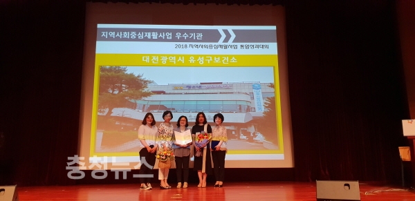 대전 유성구보건소가 지난달 29일 서울 누리꿈스퀘어 비즈니스타워에서 열린 ‘2018 지역사회중심재활사업 통합성과대회’에서 우수기관으로 선정돼 보건복지부장관상을 수상했다고 3일 밝혔다.